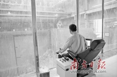 工作人員利用電腦實(shí)時(shí)控制垃圾處理進(jìn)程。