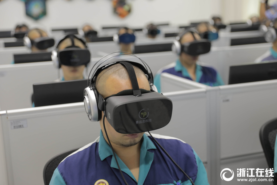 6月26日,浙江拱宸強(qiáng)制隔離戒毒所內(nèi),戒毒人員通過(guò)腦電技術(shù)和VR技術(shù)輔助戒毒。這些黑科技可以讓戒毒人員身臨其境地體會(huì)到吸毒的危害,從心理上減弱對(duì)毒品的依賴(lài)。(浙江在線記者 錢(qián)璐斌 徐文迪 攝)