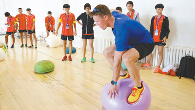 2018年全國第一期青少年越野滑雪夏令營日前在黑龍江省哈爾濱市開營,圖為教練正在進(jìn)行訓(xùn)練示范。郭傳委攝