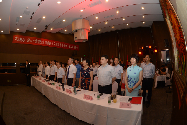 北京支持雄安產(chǎn)業(yè)發(fā)展促進(jìn)會30日下午在京舉行“不忘初心 迎七一”黨建引領(lǐng)精準(zhǔn)扶貧交流會,與會人員起立唱國歌。