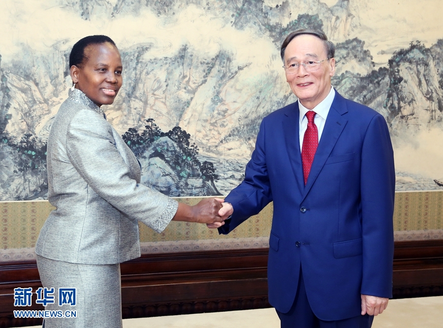 ?7月13日,國(guó)家副主席王岐山在北京中南海會(huì)見(jiàn)博茨瓦納國(guó)際事務(wù)與合作部長(zhǎng)尤妮蒂·道。 新華社記者 姚大偉 攝