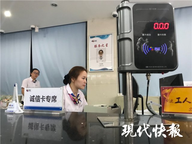 現(xiàn)代快報記者看到,周萍將市民卡交到營業(yè)人員手中,經(jīng)過核驗,確認她為民政部門報送的"誠實守信好市民",點擊升級,不到1分鐘,有著就醫(yī)、乘車等功能的市民卡,就變身為"市民誠信卡"。