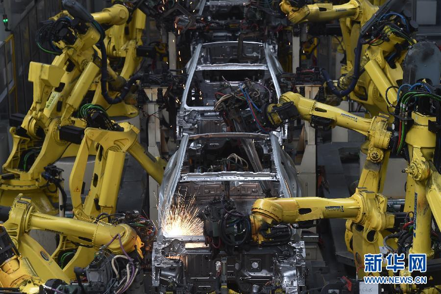 在寧波市北侖區(qū)吉利汽車春曉制造基地拍攝的自動化焊接線(2016年7月22日攝)。吉利汽車春曉制造基地采用全自動化焊接線,通過114臺焊接機(jī)器人完成車身各部分的焊接,以保證車身制造精度的穩(wěn)定。 新華社記者 黃宗治 攝