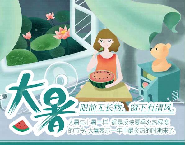 23日(周一),“大暑”節(jié)氣將正式登場(chǎng)。專(zhuān)家提示,此時(shí)節(jié)是一年里最熱的時(shí)候,公眾在飲食起居上,宜多喝水常食粥,晚睡早起適當(dāng)午睡,祛除暑熱待秋來(lái)。>>>