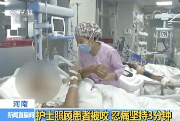 近日,在河南新鄉(xiāng)市醫(yī)學(xué)院第一附屬醫(yī)院的急診監(jiān)護室內(nèi),護士劉珊在照料重傷病患時,手臂突然被患者咬住。因為擔(dān)心掙脫會導(dǎo)致病人身上的插管脫落,劉珊就一直沒有將手臂拿開。直到醫(yī)護人員給患者打了鎮(zhèn)靜劑后,患者才慢慢松開了牙齒,此時劉珊已經(jīng)堅持了3分鐘。