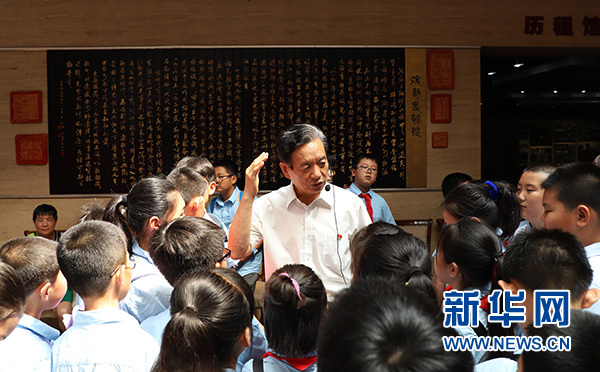 徐文濤為參觀的小學(xué)生講解黨史軍史(7月16日攝)。 新華社發(fā)(高磊攝)