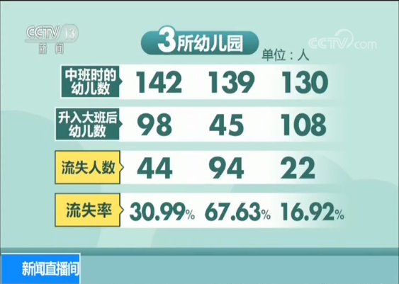 據(jù)北京一位在幼兒園工作多年的教師,對(duì)周邊3所幼兒園大班孩子進(jìn)行的調(diào)查顯示,每年從中班升入大班以后,孩子數(shù)量都會(huì)有所減少,特別是在大班第二學(xué)期流失更為嚴(yán)重。3所幼兒園中班時(shí)的幼兒數(shù)分別為142、139、130,升入大班后的幼兒數(shù)分別為98、45、108,分別流失了44人、94人、22人,流失率分別為30.99%、67.63%、16.92%。這些大班“輟學(xué)”的孩子大多去了以幼小銜接名義舉辦的學(xué)前班,提前開始小學(xué)學(xué)習(xí)。
