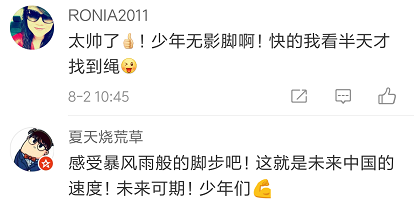 網(wǎng)友們紛紛留言:“太快了!計(jì)數(shù)都來(lái)不及!”“少年強(qiáng)則中國(guó)強(qiáng)!”