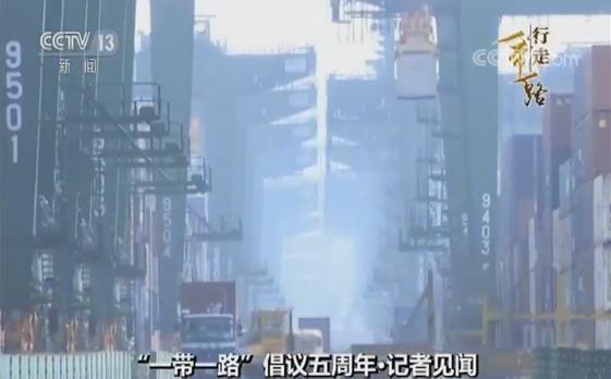 記者:“五年來,作為‘一帶一路’的踐行者和貿(mào)易暢通最直接的見者證,像荷蘭號這樣的商船和這些集裝箱像一個個使者一樣,用集裝箱里的貨物穿針引線,將互利互惠、合作共享的蛋糕越做越大,在這條串聯(lián)著歐亞大陸的海上絲路上編制著新絲路的未來。”
