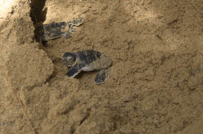斯里蘭卡綿長的海岸線是海龜?shù)奶烊痪奂?,然而如今這一海洋“活化石”的數(shù)量正在急劇減少。原本,小海龜?shù)某苫盥示蜆O低,大約1000只海龜卵才能孵化出1只小海龜。近年來海龜生存越發(fā)艱難,被漁網(wǎng)纏住、偷捕行為屢禁不止以及度假村的擴張等,都讓剛出殼的小海龜在回歸大海的短短路途中喪命。