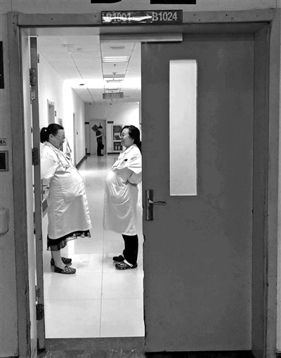 距離預產(chǎn)期只有十天的準媽媽醫(yī)生姚芳蘭和李曉青,