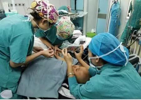 神情專注地給手術床上的年僅7歲小患者進行麻醉。