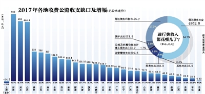 此外,記者對(duì)已公布的29個(gè)省、自治區(qū)、直轄市的收費(fèi)公路通行費(fèi)平衡情況進(jìn)行統(tǒng)計(jì)后發(fā)現(xiàn),16個(gè)省份的通行費(fèi)收支缺口情況都出現(xiàn)進(jìn)一步擴(kuò)大的趨勢(shì),占比達(dá)55%。而上海市是已公布省份中唯一實(shí)現(xiàn)收費(fèi)公路“扭虧為盈”的省份,截至2017年底實(shí)現(xiàn)盈利14.2億元。