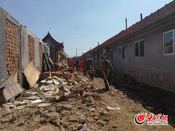 “前兩天泄洪時(shí),洪水漫過路面進(jìn)入了口子村,最深處積水有兩米多深?!鄙峡阪?zhèn)黨委副書記張文杰告訴記者,口子村是壽光當(dāng)?shù)厥転?zāi)最嚴(yán)重的村莊之一,為了防止即將到來的暴雨對(duì)口子村產(chǎn)生二次災(zāi)害,目前來自臨沂、泰安兩地的900名消防官兵正在和500多名當(dāng)?shù)馗刹咳罕姟⒅驹刚咭黄鹱ゾo時(shí)間對(duì)村里的垃圾和淤泥進(jìn)行清理。抽排積水。
