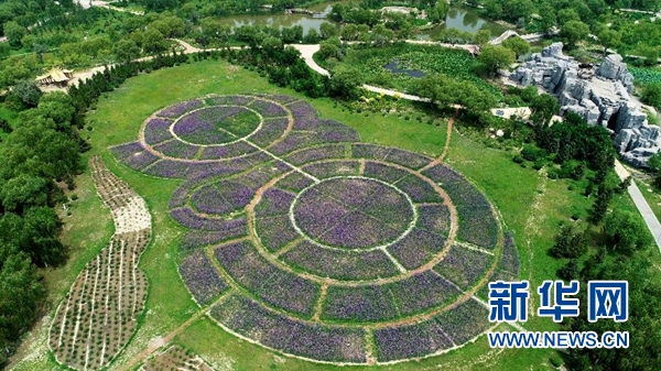 在寧夏石嘴山大武口發(fā)電廠第二排灰場上建起的石嘴山人民公園(7月31日無人機拍攝)。 新華社記者 王鵬 攝