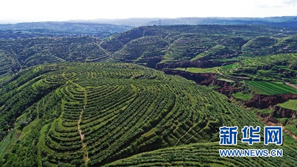 寧夏彭陽縣金雞坪梯田公園(7月16日無人機拍攝)。 新華社記者 王鵬 攝