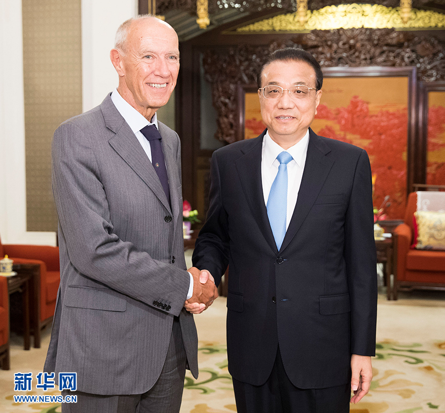 8月28日,國務(wù)院總理李克強(qiáng)在北京中南海紫光閣會(huì)見來華出席“一帶一路”知識(shí)產(chǎn)權(quán)高級(jí)別會(huì)議的世界知識(shí)產(chǎn)權(quán)組織總干事高銳和與會(huì)代表。新華社記者黃敬文攝