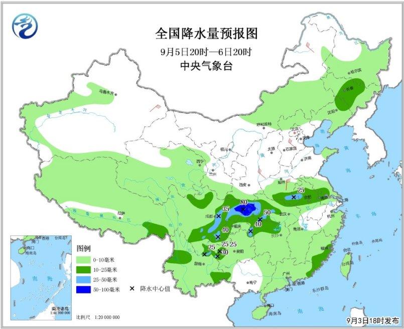 另外,9月3日夜間至4日白天,云南西部和南部、廣西南部沿海、四川盆地東部和南部、海南島和雷州半島、江西東部、福建西北部和東部沿海等地的部分地區(qū)有中到大雨,局地有暴雨;上述部分地區(qū)伴有短時(shí)強(qiáng)降水(小時(shí)雨量20~40毫米),局地有雷暴大風(fēng)等強(qiáng)對(duì)流天氣。