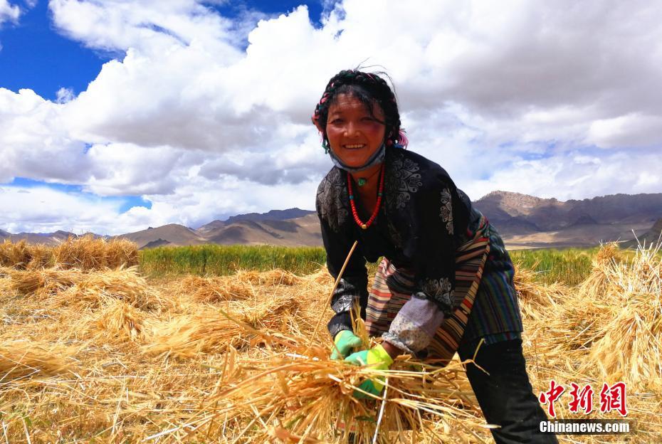 青稞作為青藏高原特有的糧食作物,是西藏種植面積最大、產(chǎn)量占糧食作物比重最高的農(nóng)作物。進(jìn)入9月,西藏也將迎來首個(gè)“中國農(nóng)民豐收節(jié)”,2018年,西藏青稞的總種植面積將增至211萬畝,產(chǎn)量將突破80萬噸。圖為9月12日,日喀則市定日縣扎果鄉(xiāng)的農(nóng)牧民次仁曲珍在地里收青稞。 中新社記者 趙延 攝?