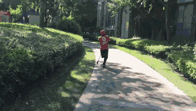 不能用雙腿走路,他就訓(xùn)練單腿跳躍