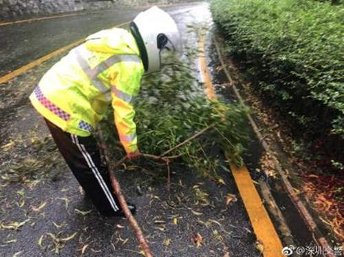 ▲面對超強臺風“山竹”正面襲擊南粵,全省交警部門提高勤務響應等級,加強值班備勤與警力部署,警力全員在崗在位。臺風來臨之際,交警門正在搬運沙袋、清理路面。