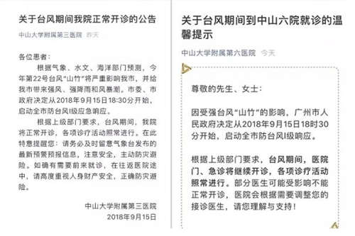 ▲各大醫(yī)院發(fā)布通知,臺風期間正常上班、照常開診。