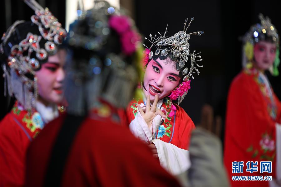 深澤墜子劇團演員和當?shù)貙W生同臺演出