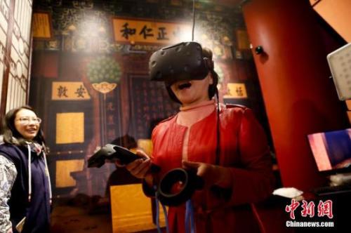 資料圖:"發(fā)現·養(yǎng)心殿——主題數字體驗展”在故宮端門數字館全新亮相。圖為運用VR技術參觀養(yǎng)心殿。中新社記者 杜洋 攝