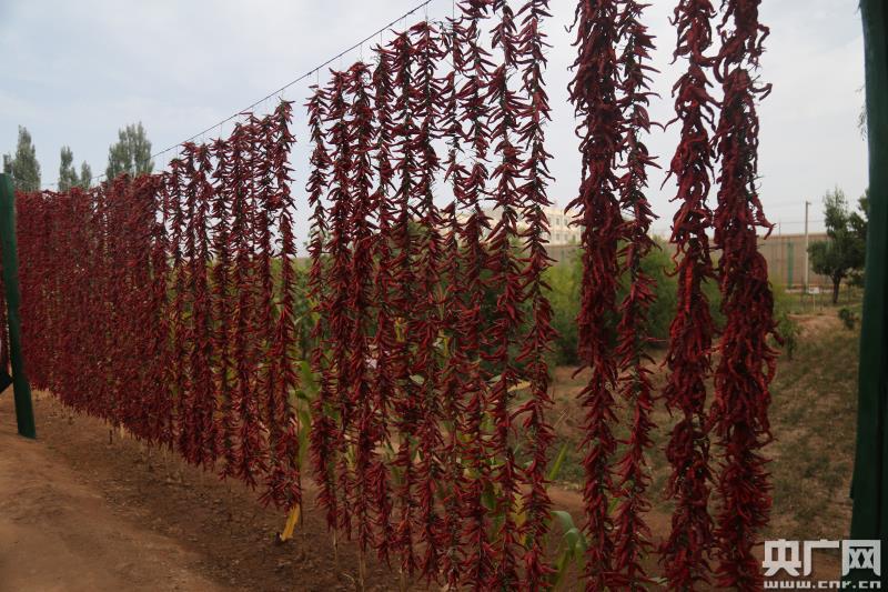 營區(qū)曬的辣椒(央廣網記者 李建峰 攝)