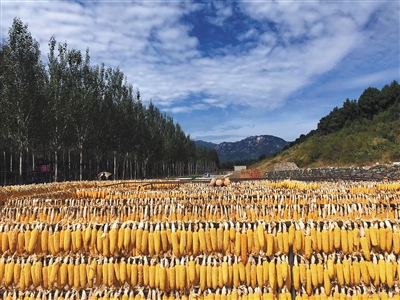密云區(qū)溪翁莊鎮(zhèn),農(nóng)民豐收節(jié)活動(dòng)現(xiàn)場(chǎng)擺滿玉米。密云區(qū)供圖