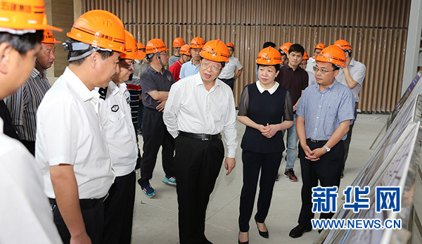 浙江省湖州市委副書記、市長錢三雄(前右三)檢查位于德清縣的首屆聯(lián)合國世界地理信息大會項(xiàng)目建設(shè)(2018年6月10日攝)。新華社發(fā)