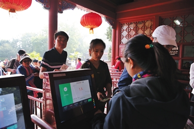 記者從香山公園了解到,國(guó)慶期間香山公園實(shí)施游客網(wǎng)上預(yù)約游覽制度,每日最大售票量7萬(wàn)張。記者走訪注意到,香山公園門區(qū)已全部更換售驗(yàn)票系統(tǒng),東門、北門設(shè)置了12臺(tái)綜合驗(yàn)票機(jī),可同時(shí)檢驗(yàn)電子二維碼、紙票二維碼等,游客掃碼、屏幕上出現(xiàn)確認(rèn)界面后即可入園,耗時(shí)僅需1-2秒。(記者周依)