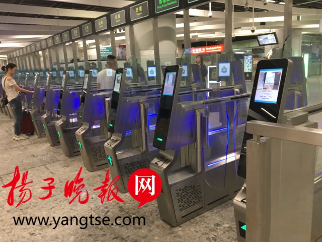 香港西九龍站實行“同層兩檢”??邕^這一條黃線就來到了香港口岸區(qū)。記者在進入香港入境待檢區(qū)域后,首先看到有三處設(shè)置體溫檢查的柜臺。再往里走,即是香港居民入境通道。一排閘機依次排開,港澳通行證放上即可通過。不過首次來港的旅客需要從人工柜臺入關(guān)。記者到達時,辦理香港入境程序的人較少,整個用時不到2分鐘,就完成辦理了入境程序。而在完成香港入境程序后,即可到檢票閘機處刷票出閘。從下車到入關(guān),記者一共花了約15分鐘?!艾F(xiàn)在正是小長假,如果沒有坐高鐵而是選擇從福田口岸過關(guān),1個小時都搞不定。”一位福田游客告訴記者。