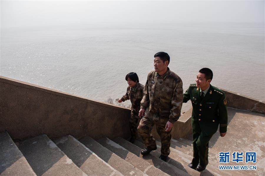 2015年2月13日,王志國(guó)(右)在開(kāi)山島上陪父母巡島。