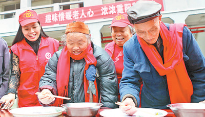 10月15日,重慶市永川區(qū)雙石鎮(zhèn)敬老院里歡歌笑語、熱鬧非凡,雙石鎮(zhèn)機(jī)關(guān)、社區(qū)的志愿者在此開展“趣味情暖老人心 濃濃重陽敬老情”主題活動,為30余名老人送去重陽節(jié)的祝福。圖為老人在志愿者的助威聲中玩夾彈珠游戲。劉新吾 陳仕川攝影報道