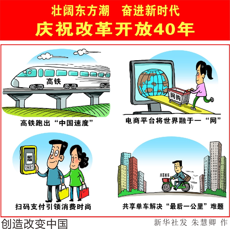 創(chuàng)新:當(dāng)天宮、蛟龍、天眼、悟空、墨子、大飛機(jī)等重大科技成果相繼問世,當(dāng)高鐵跑出“中國速度”,電商平臺將世界融于一“網(wǎng)”,掃碼支付引領(lǐng)消費(fèi)時(shí)尚,共享單車為“最后一公里”提供解決方案,中國人民的創(chuàng)造精神在新時(shí)代里正前所未有地迸發(fā)出來。↓↓