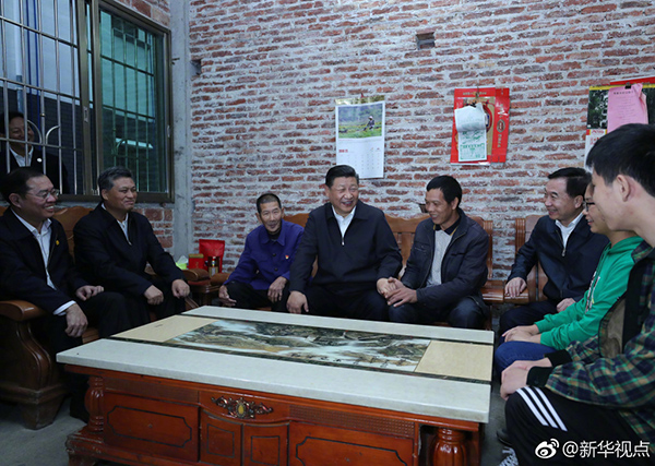 23日下午,習(xí)近平一行沿著崎嶇的山路乘車來到廣東省英德市連江口鎮(zhèn)連樟村,走進(jìn)村公共服務(wù)站、扶貧玩具加工廠車間和貧困戶家中,同村民們親切交談。他強(qiáng)調(diào),全面建成小康社會一個都不能少,在脫貧攻堅(jiān)戰(zhàn)中,基層黨組織要發(fā)揮戰(zhàn)斗堡壘作用,一任接著一任抓,一仗接著一仗打,一代接著一代干,積小勝為大勝,最后取得全面勝利。要認(rèn)真抓好鄉(xiāng)村振興戰(zhàn)略,在脫貧致富基礎(chǔ)上加快推動鄉(xiāng)村全面振興,實(shí)現(xiàn)農(nóng)業(yè)農(nóng)村現(xiàn)代化。我們相信,我國廣大農(nóng)民生活一定能越來越幸福。(記者:張曉松、鞠鵬)