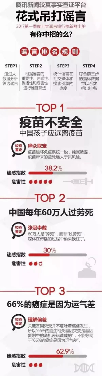 去年,某媒體發(fā)布了醫(yī)療健康類十大謠言榜單,提醒公眾對醫(yī)療健康類網(wǎng)文提高警惕性。