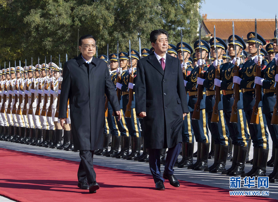 李克強(qiáng)表示,中日兩國互為重要近鄰,發(fā)展長期健康穩(wěn)定的中日關(guān)系符合兩國和兩國人民根本利益,對地區(qū)和國際社會也十分重要。中方重視發(fā)展對日關(guān)系。習(xí)近平主席將同安倍首相舉行會見。我們愿同日方在中日四個政治文件各項原則基礎(chǔ)上,繼續(xù)本著以史為鑒、面向未來的精神,推動兩國關(guān)系在重回正軌基礎(chǔ)上取得新的發(fā)展,努力實現(xiàn)行穩(wěn)致遠(yuǎn)的目標(biāo)。