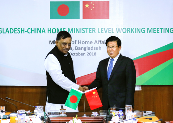 10月26日,國務(wù)委員、公安部部長趙克志在達(dá)卡與孟加拉國內(nèi)政部部長阿薩杜扎曼·汗舉行會談。