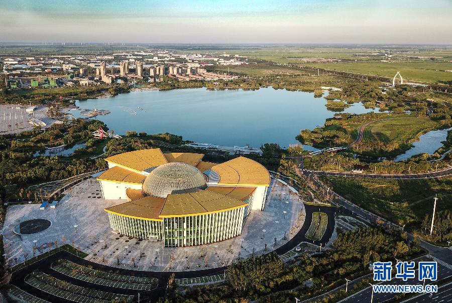 這是白城市科文中心及鶴鳴湖公園全景(7月28日無人機(jī)拍攝)。 新華社記者許暢攝