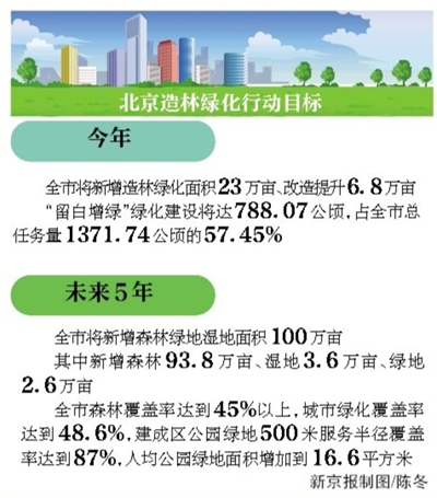 市園林綠化局副局長(zhǎng)蔡寶軍告訴記者,新一輪百萬畝造林綠化總體規(guī)劃,將在城市核心區(qū)實(shí)現(xiàn)生態(tài)景觀重塑,中心城區(qū)和新城區(qū)多元增綠,形成城市森林與公園綠地為主體的城市綠化體系。未來,北京市將以城市副中心、北京新機(jī)場(chǎng)、冬奧會(huì)、永定河、大運(yùn)河、“三山五園”、十八里店、南中軸等重點(diǎn)區(qū)域綠化為節(jié)點(diǎn),形成大尺度森林濕地群落、高品質(zhì)綠地公園組團(tuán)、多景觀田園村莊綠化為主體的綠化體系。