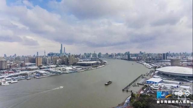 ↑大雪過(guò)后的黃浦江兩岸。新華網(wǎng) 吳愷 攝