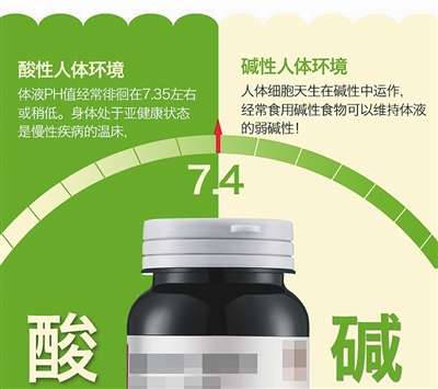 新京報(bào)記者查閱資料發(fā)現(xiàn),“酸堿體質(zhì)理論”基本觀點(diǎn)認(rèn)為,人體體液的pH值處于7.35~7.45 的弱堿狀態(tài)是最健康的,但很多人由于生活習(xí)慣及環(huán)境的影響成“酸性體質(zhì)”,會(huì)造成多種疾病甚至癌癥。