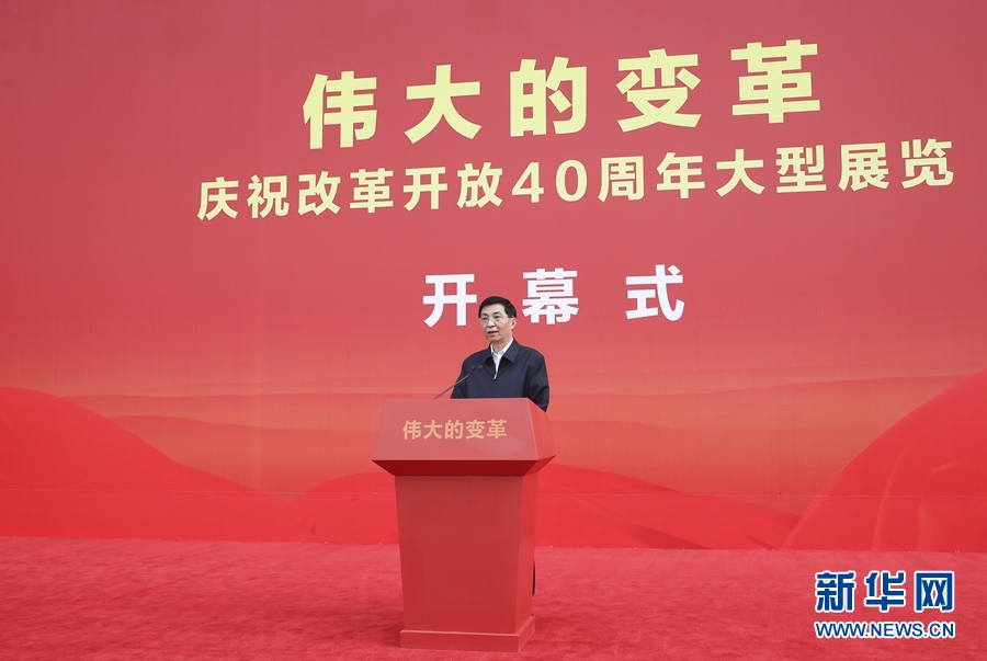 新華社北京11月13日電 “偉大的變革——慶祝改革開放40周年大型展覽”開幕式13日上午在國家博物館舉行。中共中央政治局常委、中央書記處書記王滬寧發(fā)表講話并宣布展覽開幕。