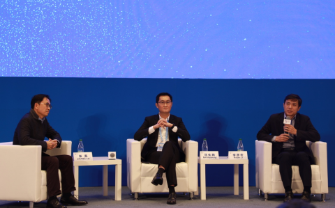 第五屆世界互聯(lián)網(wǎng)大會(huì)企業(yè)家高峰對(duì)話(huà)分論壇,高瓴資本張磊(左)、騰訊馬化騰(中)、百度李彥宏(右)