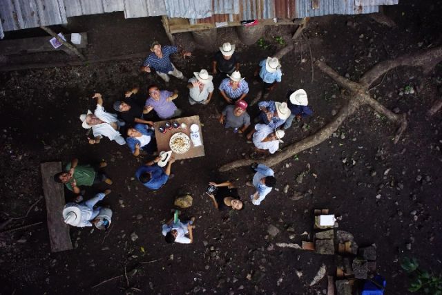 在科潘遺址的考古發(fā)掘間隙,中國考古學(xué)家和當(dāng)?shù)乜脊殴ぷ髡咴诹珠g空地歡聚小憩。(中國社科院考古所供圖)