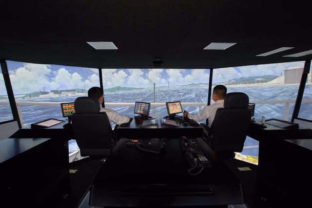 工作人員在海上浮托作業(yè)仿真模擬現(xiàn)場