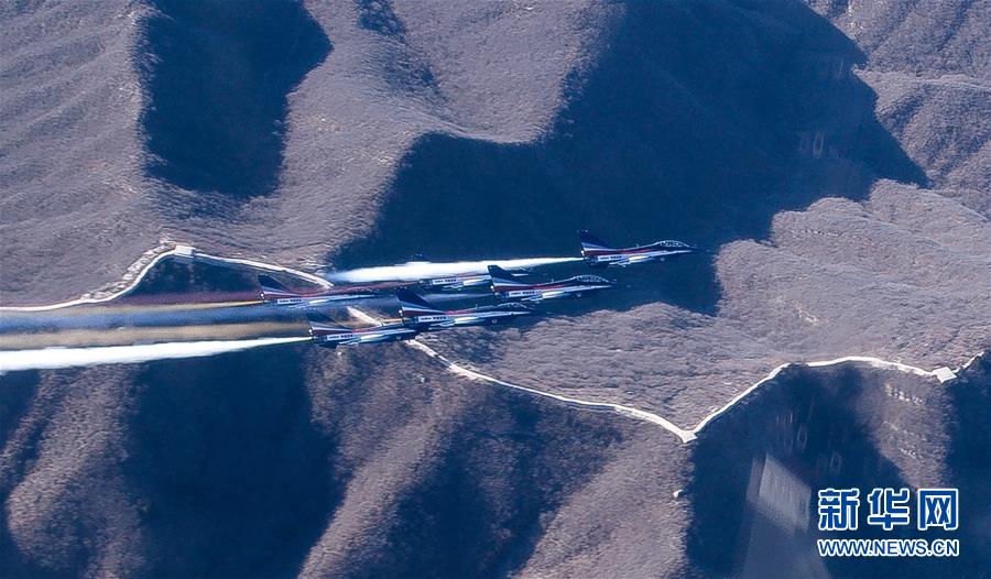 12月6日,中國(guó)空軍八一飛行表演隊(duì)6架殲-10飛越長(zhǎng)城。? 新華社發(fā)(陶佳莉 攝)