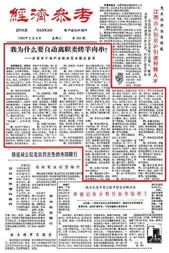 在《我為什么自動離職賣烤羊肉串?》一文中,余林舟說,賣烤羊肉串14個月的營業(yè)額超過12000元,獲純利6000多元。十二大報告說要發(fā)展個體經(jīng)濟,對它不準打擊刁難,“我才下決心,當個個體戶。”